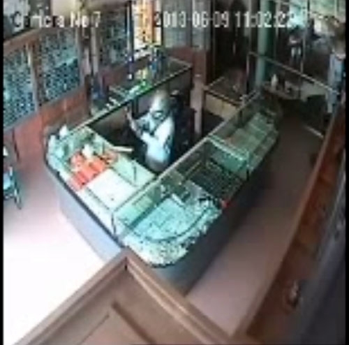 Nghe tiếng tri hô, chủ quán, bảo vệ quán và người dân quanh khu vực dùng gạch đá ném về tên cướp. Mặc cho mọi người ném gạch đá, tên cướp vẫn bình tĩnh đập vỡ tủ kính đựng vàng để lấy một lượng vàng cho vào túi.